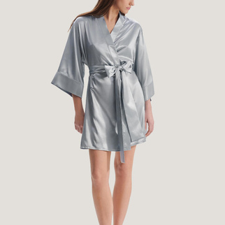 Шёлковый халат-кимоно короткий серебристо-голубой