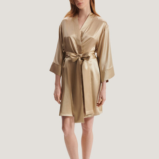 Шёлковый халат-кимоно короткий классический бежевый